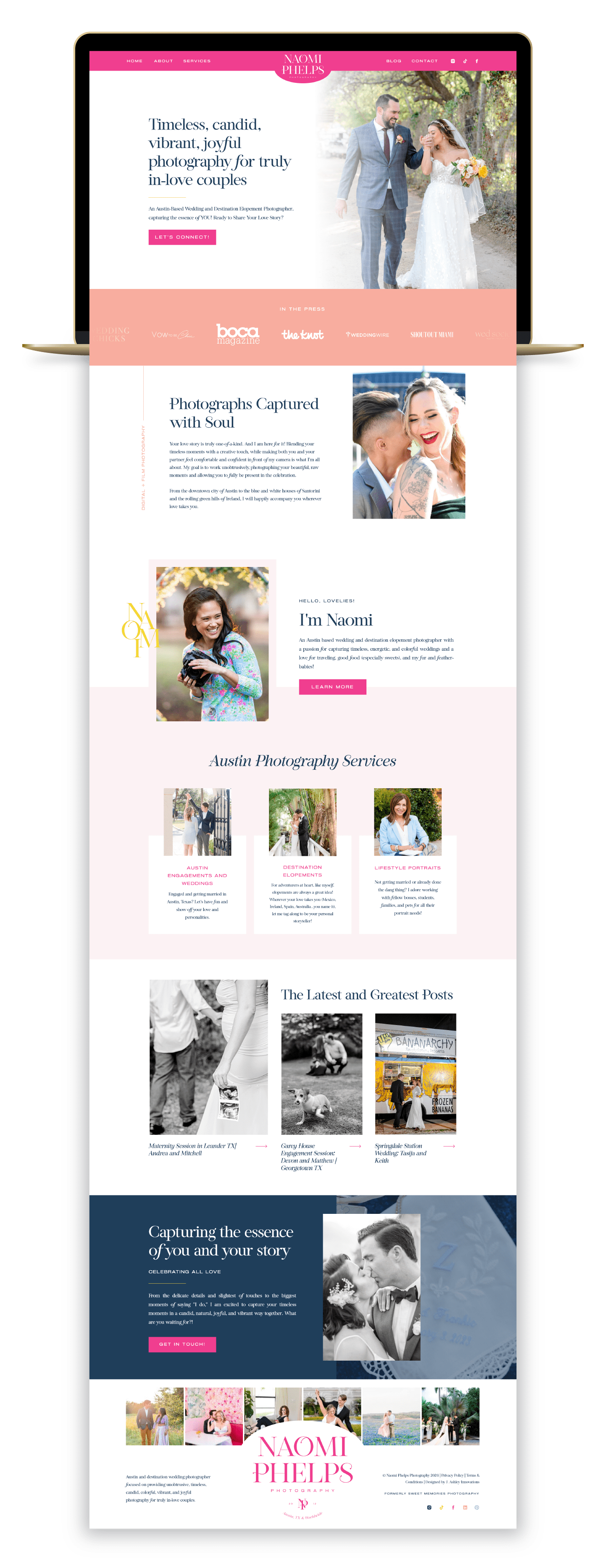 Once the brand direction settled into place, Naomi’s website became a natural extension of the story we were building. Her photography carries so much emotion that the site needed to feel like an experience, not a brochure. Each page was structured to welcome, guide, and support the visitor, mirroring the way Naomi cares for her clients from the first inquiry to the final image delivery.