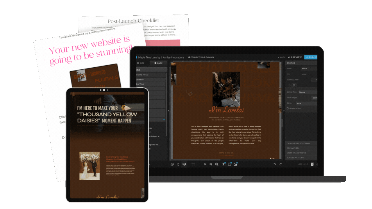 Once your template is customized to show off your beautiful business, it's time to get it out into the world! You'll hit "publish" and pour yourself a glass of champagne because big things are coming your way!
